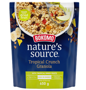 Bokomo Nature Source Granola has been part of the Bokomo family since 2001, aiding South African families to start their day the treaty way. Delicious in a bowl, as a quick snack or added to your favourite recipes, Bokomo Nature Source Granola gives every mouthful a tasty baked granola crunch.